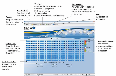 专属的IONMANAGER PRO 软件提供了可视化的监控和管理工具,包括报警状态,系统安装位置图,离子产生器和控制台的操作状态,和报警状态和维护警报的自动通知设定储存的数据日志提供系统的变化纪录,也能设定安全级别,仅授权用户可登入查看。